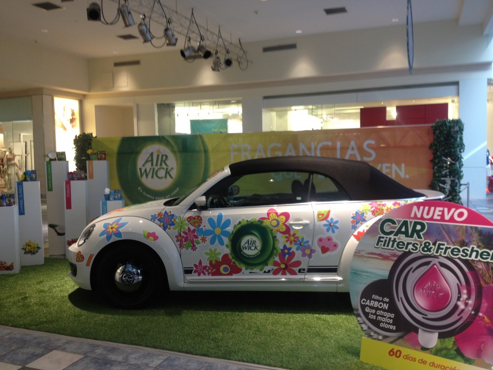 If you are going to promote car air fresheners you need a car, but not just any car, you need hip-chick, flower covered beetle in the center of Puerto Rico’s trendiest malls.